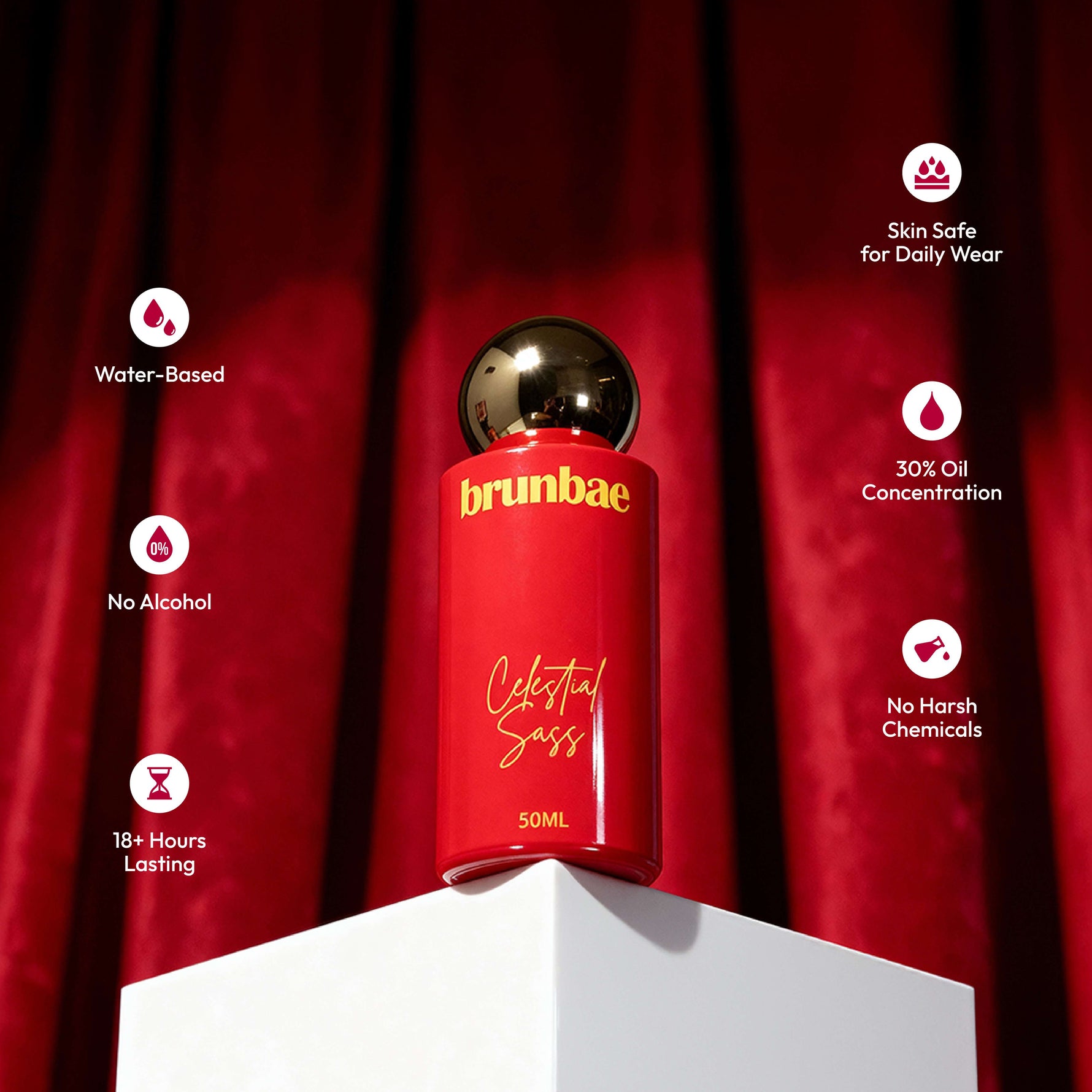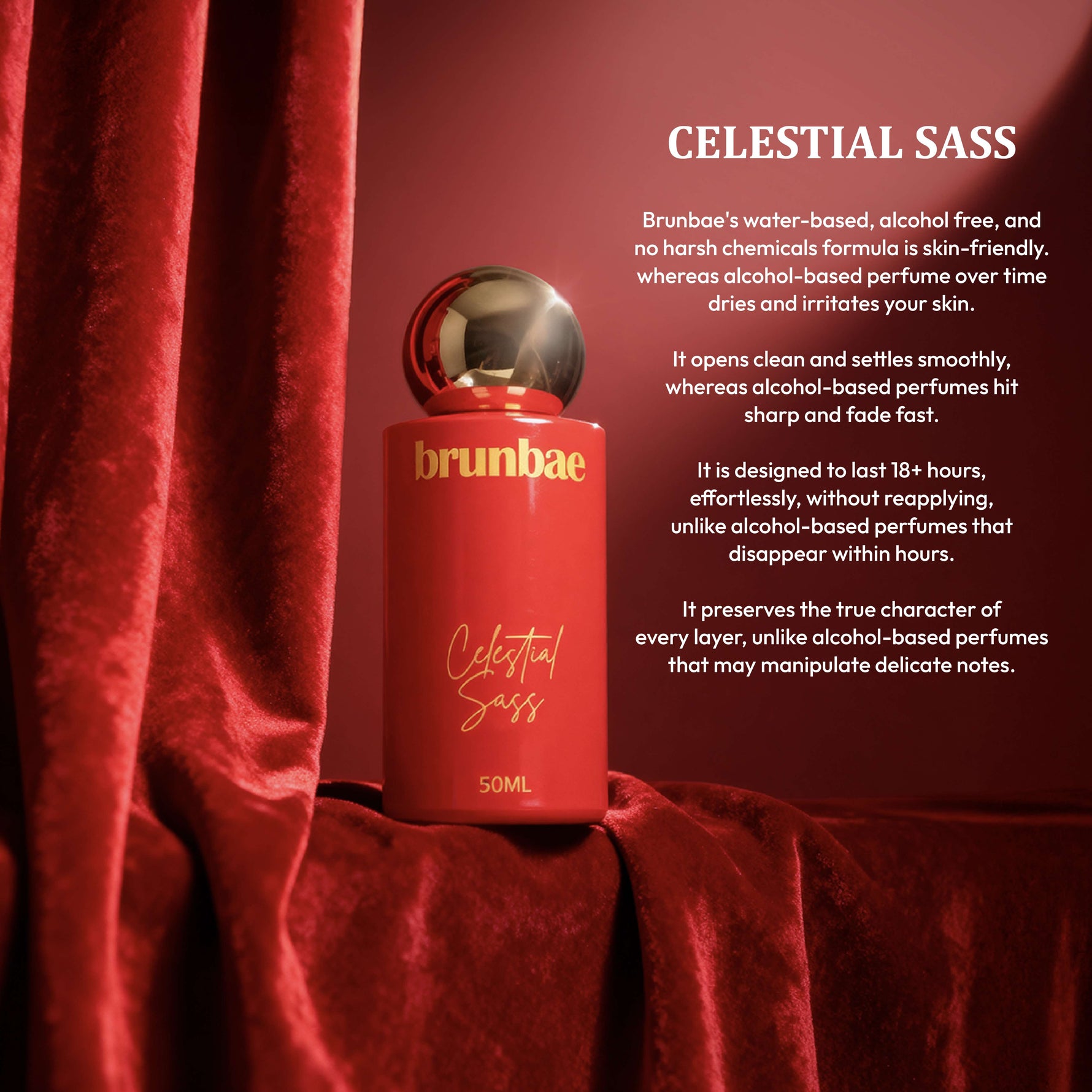 A radiant spark of black currant and green tangerine opens the night playful, unexpected, and now crafted in a water-based, alcohol-free formula that’s gentle on your skin. Unlike traditional alcohol perfumes, Celestial Sass gives you fragrance without dryness, irritation, or harshness, making every spritz feel soft, smooth, and comfortable.
